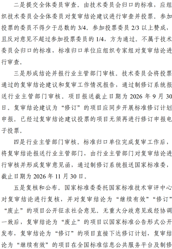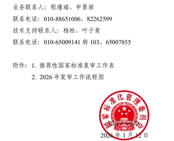 《国家标准委关于开展2026年推荐性国家标准复审工作的通知》正式发布。具体内容如下: