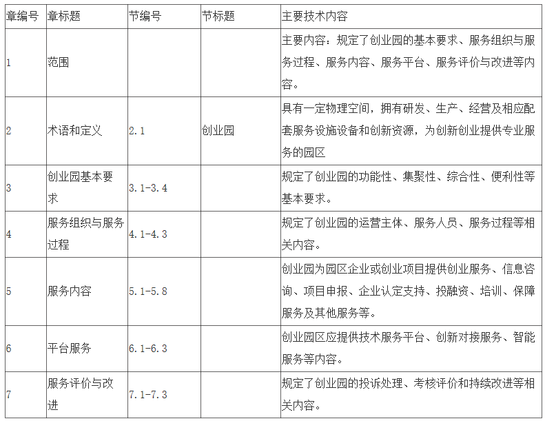 标准规范基础服务要求,提升创新创业水平。本标准通过规范创业园的组织管理以及各类科技服务,加强服务的供给水平和能力,为园区企业提供必需的基础物业服务、中介资源、平台服务等,有力发展科技企业与科技产业,推进产城融合,不断提升科技创新能力和治理能力。