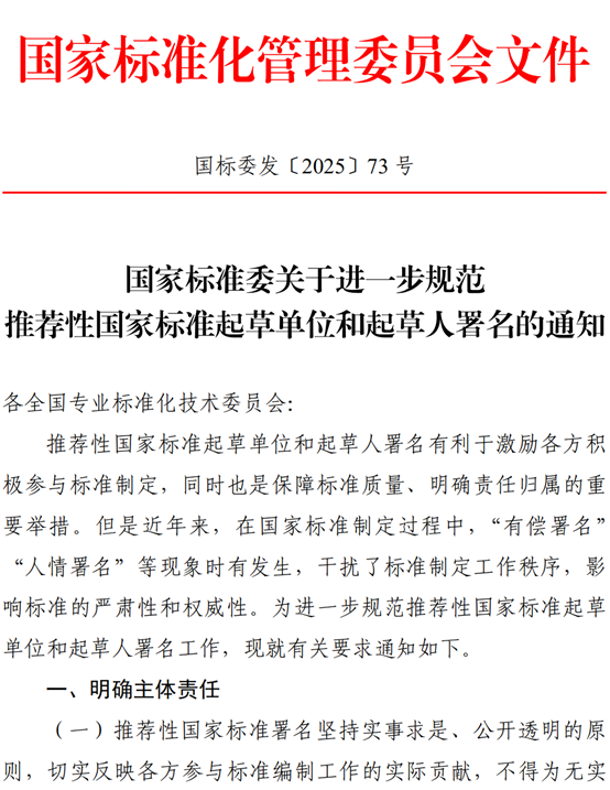 日前,《国家标准委关于进一步规范推荐性国家标准起草单位和起草人署名的通知》正式发布。具体内容如下: